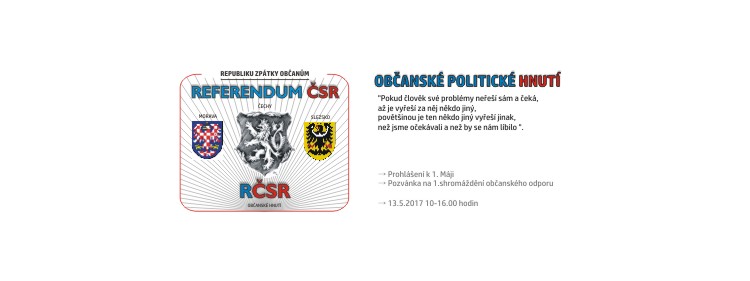 PROHLÁŠENÍ OBČANSKÉHO HNUTÍ REFERENDUM ČSR K 1.MÁJI 2017 K příležitosti 1. máje bych chtěl popřát jménem občanského hnutí Referendum ČSR všem našich sympatizantům a každému občanovi