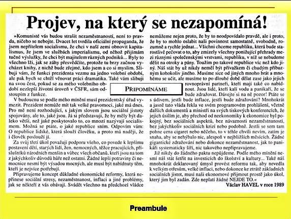 Všechny ty proslovy k národu už tehdy zůstaly jen planými slovy, a navíc začala devastace naší, tehdy téměř soběstačné, země. Nechci zde jmenovat všechna odvětví průmyslu, zemědělství na velmi dobré úrovni, ani ostatní, které se buď prodalo do cizích rukou, rozkradlo či zrušilo, aby nebyla konkurence západu. Kupónová privatizace opět mega podvod atd. atd..