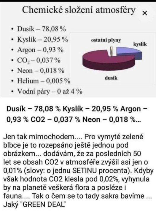 Kolik lidí si uvědomuje význam, např. všech těch slevových karet v nejrůznějších obchodech, slouží opravdu jen pro dobro i prospěch samotného spotřebitele? Nebo může ,,někomu“ pěkně posloužit a získat o každém pohodlně a bez potíží veškeré info → co, kde, kdy, kolik, za kolik pořídil každý s onou kartičkou? Nepřipravují obyvatele na budoucí plánovanou potravinovou krizi v nejrůznějších podobách v médiích? Proč tak najednou jsou v posledních letech likvidovány chovy drůbeže na údajnou ptačí chřipku, ale v okolní přírodě není po úhynu volně žijícího ptactva ani náznak? Navíc onen H5N1 údajně není nebezpečím pro člověka? Proč jsou likvidovány celé vepříny na údajný prasečí mor, a opět v přírodě není hromadný úhyn divočáků? Proč jsou likvidovány chovy skotu, opět za celých 30 let v hojném počtu, když jsou tyto chovy základním zdrojem potravy pro lidi nejen v naší zemi? Je to opravdu z důvodu, že krávy prdí a znečisťují lidem životní prostředí? A co zavádění umělého masa a jiných potravin? Na polích je hlavně řepka, kukuřice a obilím jsou stále menší plochy osévány? Není už to na zamyšlení, kde je vlastně ta pravda a pravý důvod všeho? A jak je to s tím znečisťováním ovzduší a škodlivostí?