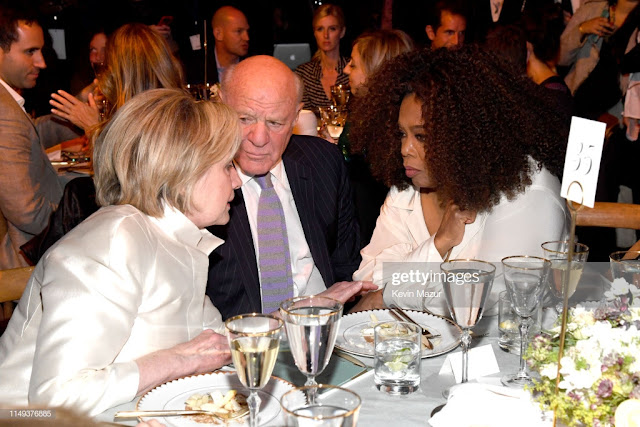Barry Diller, manžel Diane von Furstenberg, s Oprah Winfreyovou a Hillary Clintonovou. Oprah má majetek několika miliard a je nejvyšší autoritou v médiích a byla přezdívána „Královna všech médií“. Barry Diller spoluzaložil společnost Fox Broadcasting Company a vlastní mediální společnost IAC s Chelsea Clintonovou a jeho nevlastním synem princem Alexanderem von Furstenbergem jako členy představenstva. Fürstenberkové přímo řídí Clintonovy a Obamy. Svobodný zednářský Královský řád šašků byl založen na Havaji, odkud Obama pochází. Barack Obama je válečný zločinec, který zavraždil stovky nevinných civilistů raketami pekelného ohně, a to je zdokumentovaný fakt. Fürstenberkové řídí zednářské šašky a mají šaška ve svém erbu.