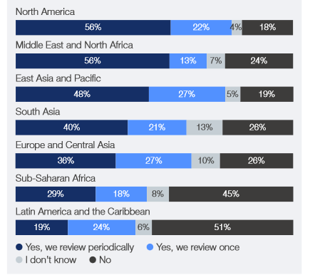 Existují také velké rozdíly v důvěře mezi jednotlivými regiony, že národní kybernetické reakce ochrání kritickou infrastrukturu. Zatímco 84 % respondentů na Blízkém východě a v severní Africe věří, že jejich země jsou připravené, pouze 13 % lidí v Latinské Americe a Karibiku sdílí tuto míru přesvědčení.